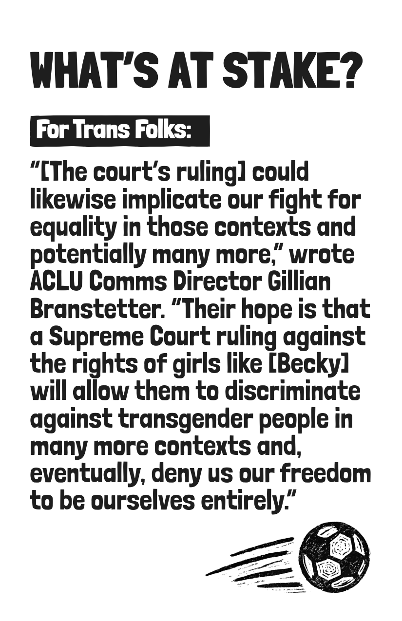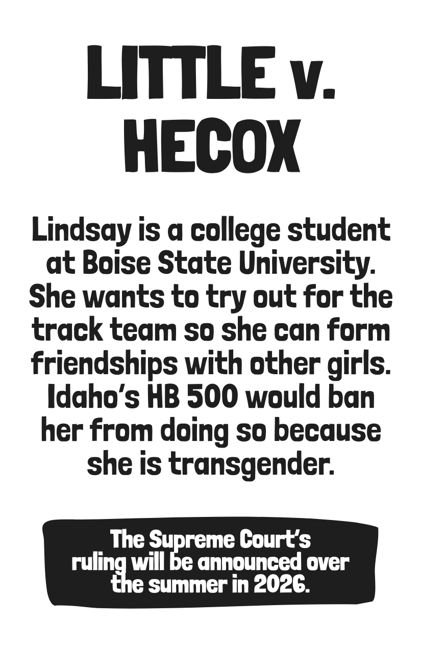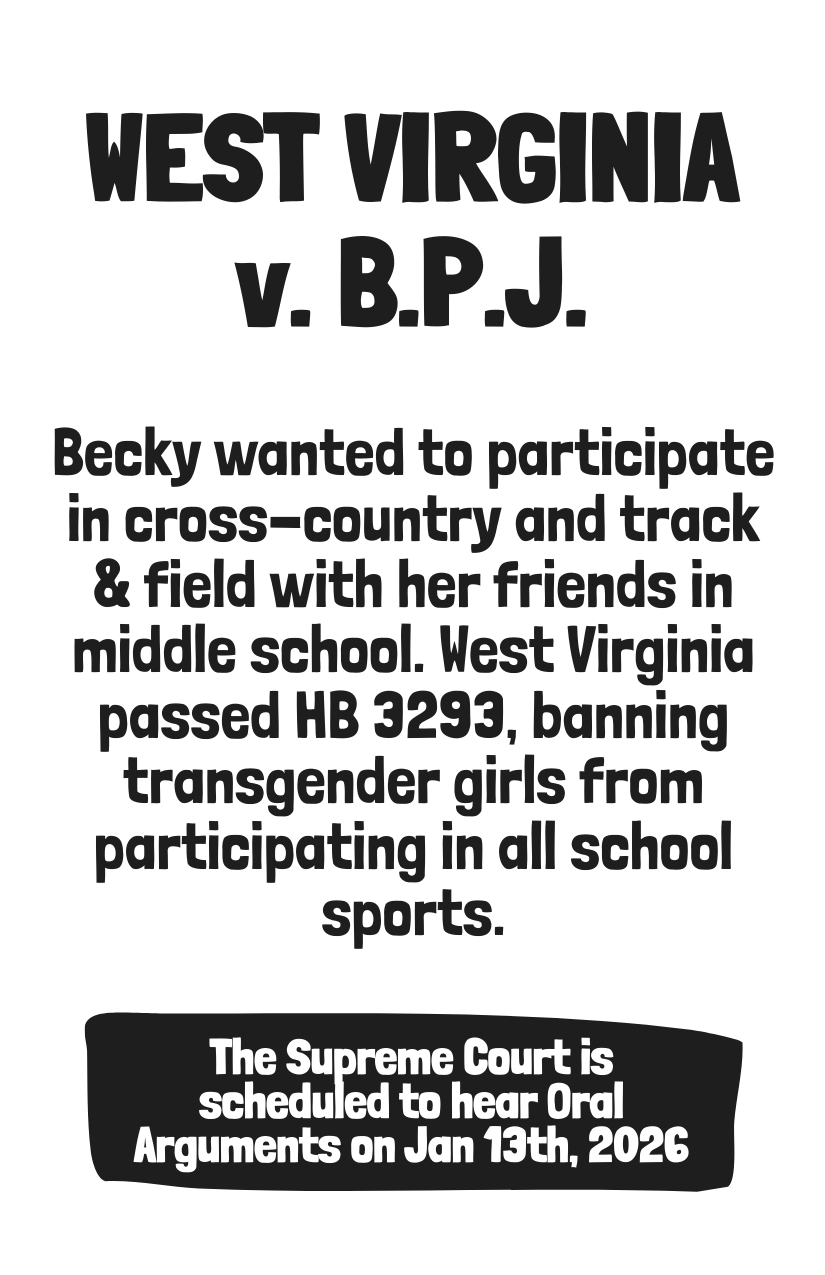 On January 13, 2026, trans youth will defend their right to play sports at the Supreme Court. These cases, West Virginia v. B.P.J. and Little v. Hecox, will be ruled on later this summer.