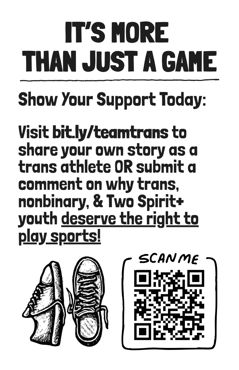 This short, but comprehensive 8-page zine is intended to educate folks about the B.P.J. and Hecox Supreme Court cases, explain what’s at stake, and inspire action with an opportunity to contribute to our story-banking efforts.